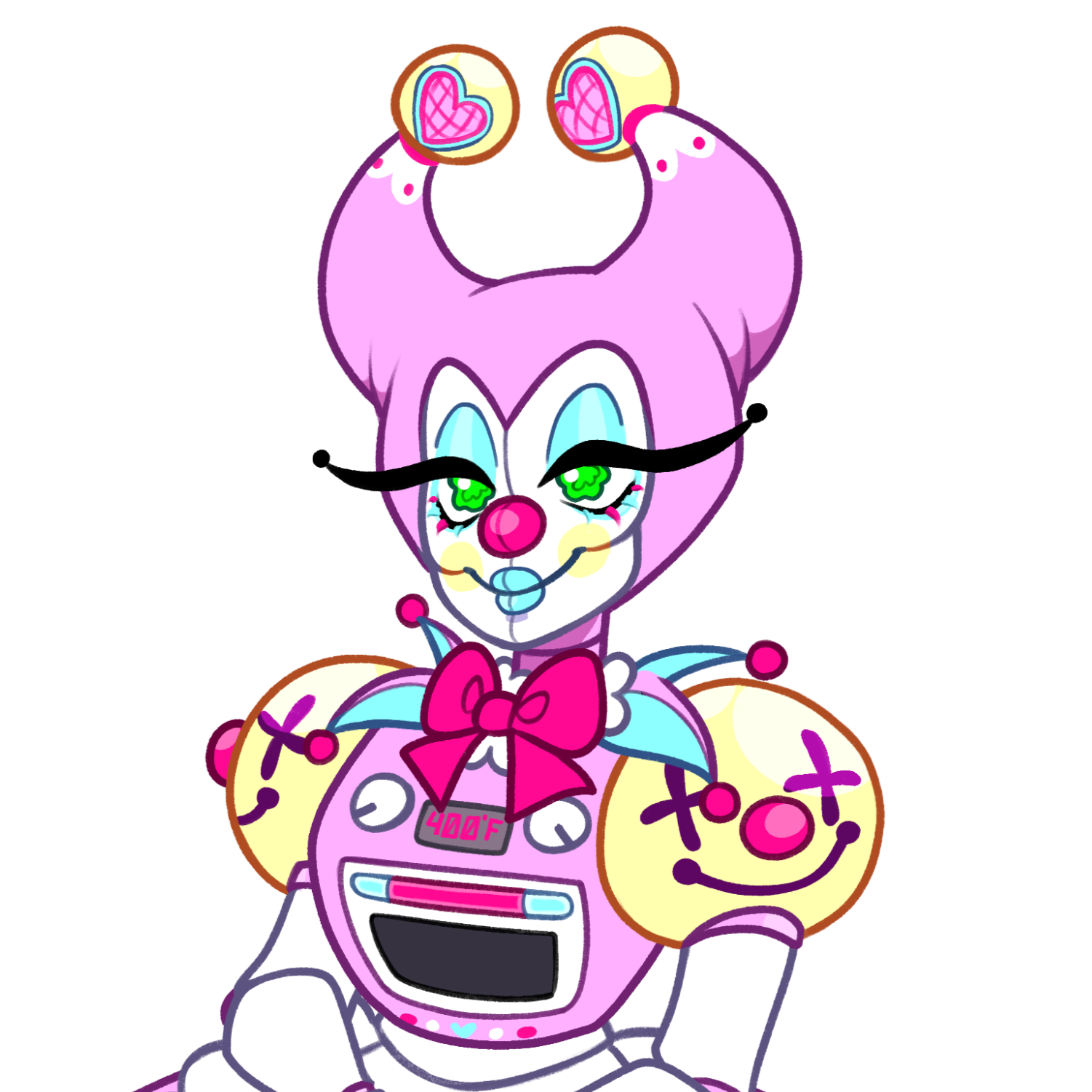 Years go by, she's fairly old and has started to wear down. Parts are no longer being made, so she's falling apart. While she does still work... she has creepy glitches every once in a while, and it's getting worse. Kids don't feel as comfortable around her nowadays, plus the fact that she's made to look like a clown doesn't exactly help. There have been a few incidents of her burning cakes and nearly stabbing a child, so she is now put into retirement in the back room.